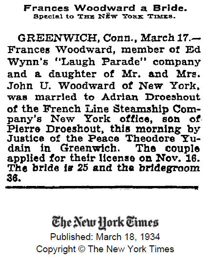 In 1934 Frances Woodward marries and again she makes the New York Times: